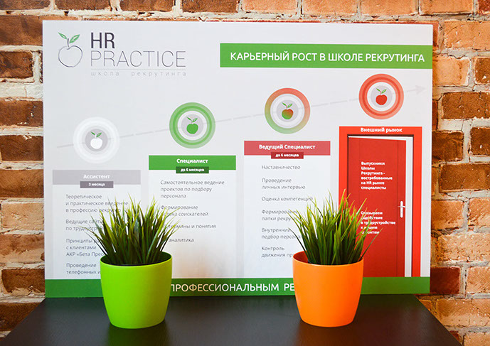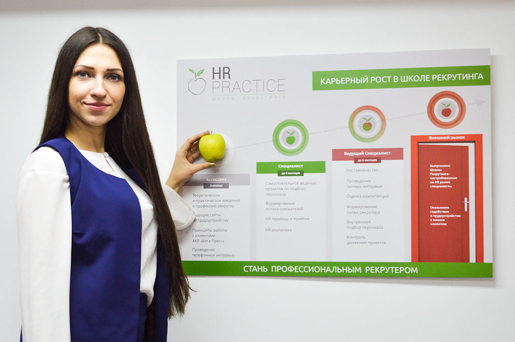 В школу приходят молодые специалисты, не имеющие опыта работы, но с четкой ориентацией на развитие в HR сфере... В течение 12-18 месяцев сотрудники получают багаж теоретических и практических знаний, умений и навыков необходимый для полноценной, работы в качестве менеджера по подбору персонала. По прохождению всех ступеней карьерной лестницы